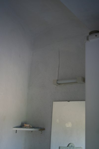 | mise en place des étagères, du lavabo | Arrêt faute de matériel.. les pieds devront attendre donc ! Mais le miroir est posé, la lumière aussi. | ||