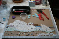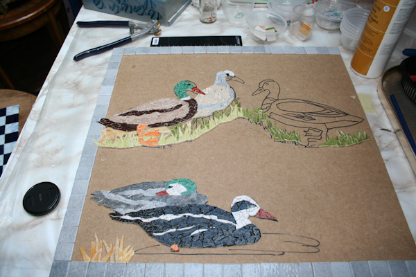 Au programme : un plan de travail avec des canards de 1.50 sur 0.50... mais il sera en 3 morceaux, pour pouvoir s'en servir comme des dessous de plats séparés... une table "échiquier".. ma première mosaïque romaine et des petites bêtises ...