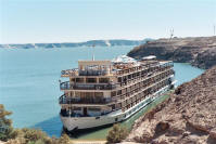 | 1ère vue du bateau, à Abou-Simbel | et vogue l'Eugénie ... | 1ère vision quand on rentre sur le bateau ... |