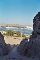 à gauche, vue d'Assouan depuis le tombeau de Sabni I et Mekhou |