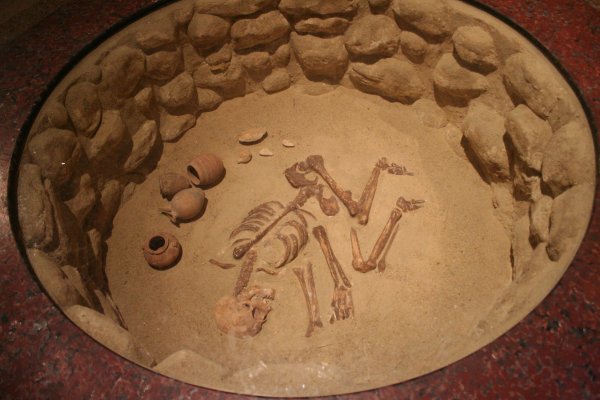 Reconstitution d'une sépulture d'un homme du groupe A. |