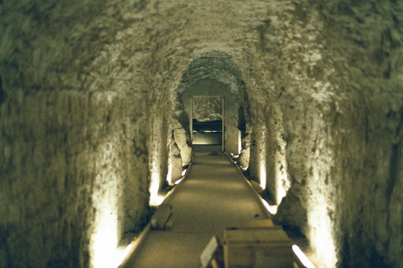 A : Entrée B : Couloir 1 + annexes C : Couloir 2 D : Couloir 3 E : Vestibule F :Salle à piliers G :Chambre funéraire