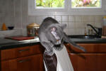 mais quel boulot en cuisine ... et pourquoi je ne peux pas aider à tout faire moi.... J'ai bien essayé de sortir les courses du panier... avec une préférence pour ces petites boules rouges foncé qui vont parfois par 2... Elle ne m'a pas laissé les pousser avec la patte là où je voulais... Sous prétexte que cela allait faire des taches... Mais pourquoi elle achète des cerises si elle aime pas la couleur ?? Bon le paquet là... semble intéressant... Et hop, il disparaît au frigo.. j'essaie de suivre mais on me laisse pas l'accès libre... Je suis petit, je sais pas lire, mais Jambon, ça semble sympa... Bon ce frigo alors... Faut dire que même que je suis petit, c'est pas trop confortable... On est tout serré la dedans, et puis la grille, pas sympa pour poser les papattes... Oh, On ne veut pas que je fasse le prélavage des assiettes... là aussi je peux pas aller... Mais je vais mourir de faim.......et surtout je peux pas choisir ce que je vais manger... pourtant il y a plein de jolies couleurs sur les assiettes... mais pas logique, elle les mets verticales... et puis je voudrais pas dire... mais le monstre qui ronronne très mais alors très très fort à qui elle les donne à manger ne va pas manger grand chose....