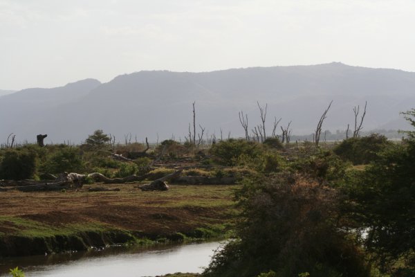 Le PARC DE MANYARA est un Petit parc de 330km2 dont près des 2/3 pour le lac. Une piste principale le traverse du Nord au Sud. Le parc est luxuriant. Des babouins nous accueillent dès l’entrée. Le parc est réputé pour ses lions montant aux arbres ( mais nous on les verra au Serengeti, ; à Manyara, on verra les lionnes les 4 pattes en l’air se prélassant au bord de la rivière Marera) et plein d'oiseaux (hérons, aigrettes, flamants roses, aigles, ibis, pélicans), des hippopotames et la végétation extraordinairement variée. Malheureusement pour nous, la petite saison des pluies n’ayant pas apporté l’eau attendue, le lac était presque asséché. Lac alcalin, c’était en fait une plaine de sel qui s’offrait au regard. De ce fait, comme l’eau ne subsistait qu’au milieu du lac, c’était bien loin pour voir les oiseaux et hippos de près…