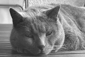 D’ailleurs à chaque problème une seule solution : un chat pour dix jours… Toujours un chat différent. Et dans la première histoire un chat gris aux yeux couleur ambre. Il n’en fallait pas plus pour me faire chavirer…