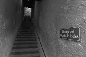 Ce passage, en grande partie couvert, remonte à 1554 et remplace un escalier à ciel ouvert conduisant directement du Bourg-de-Four à la Cathédrale Saint-Pierre. Son nom dérive probablement d’une similitude entre ses propres marches raides et celles que l’on installe dans un poulailler. (Source site de la Ville de Geneve)